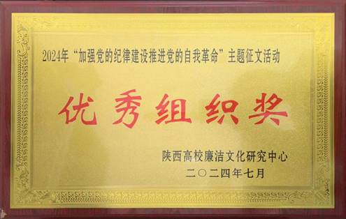 近日,陕西省廉政文化研究会公布了《关于表彰“加强党的纪律建设 推进党的自我革命”主题征文获奖论文和优秀组织单位的决定》,我校共有19项作品获奖,其中张菲菲等7位教师荣获二等奖,王鑫宇等12位教师荣获三等奖,学校荣获优秀组织奖。