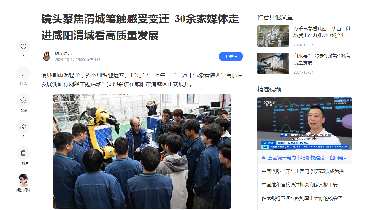 此外,随着“万千气象看陕西”高质量发展调研行记者团走进我校,近日,西安网、腾讯网等主流媒体也相继对我校“校地企”协同育人,“产、学、研”深度融合的创新发展模式进行报道,进一步扩大了学校的社会美誉度和影响力。