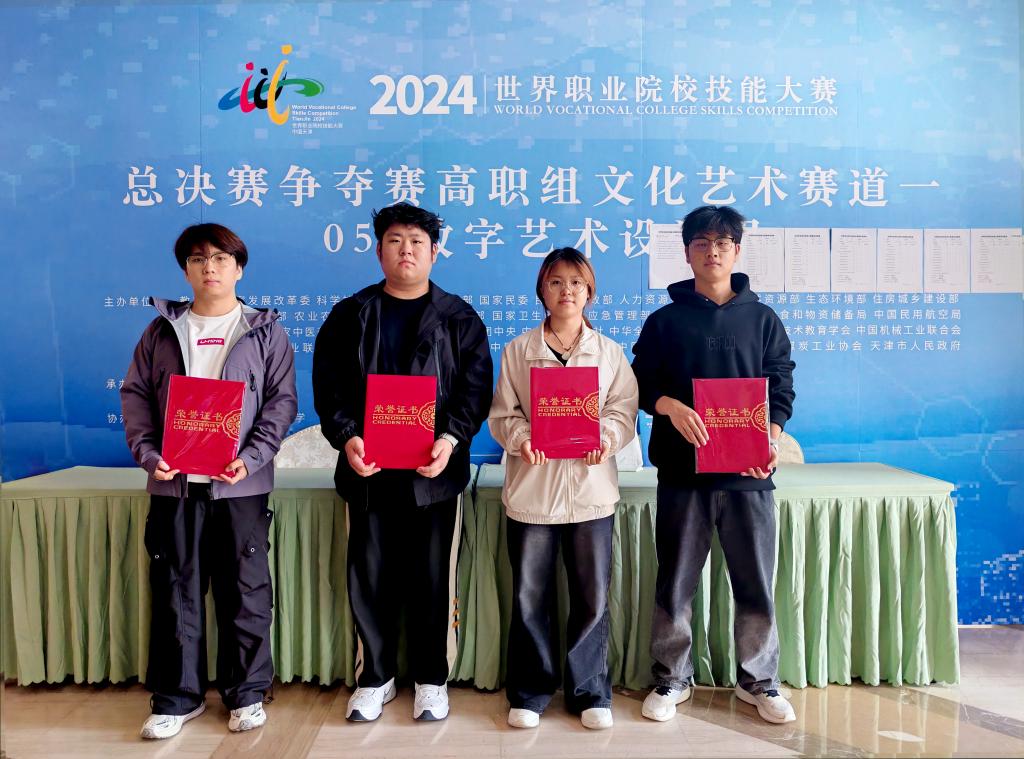 11月2日,2024年世界职业院校技能大赛总决赛“数字艺术设计”争夺赛在天津落下帷幕,本次大赛汇聚了全国62所职业院校的优秀团队同台竞技,最终由我院张凯熙、罗永钊、耿雨蒙和季乐四位同学组成的参赛团队在激烈争夺中荣获铜奖。