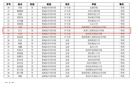 10月26日—27日,2024年陕西省高校体育教师教学技能大赛在西安交通大学兴庆校区举行。本次赛事由陕西省教育厅主办,西安交大承办,是全省体育教师教学水平和技能展示的最高赛事。我校教师吕方荣获乒乓球项目一等奖,陶雨晴荣获健美操项目二等奖,张波、高波分别荣获健美操和足球项目三等奖,取得该项赛事成绩的新突破。