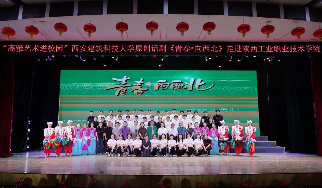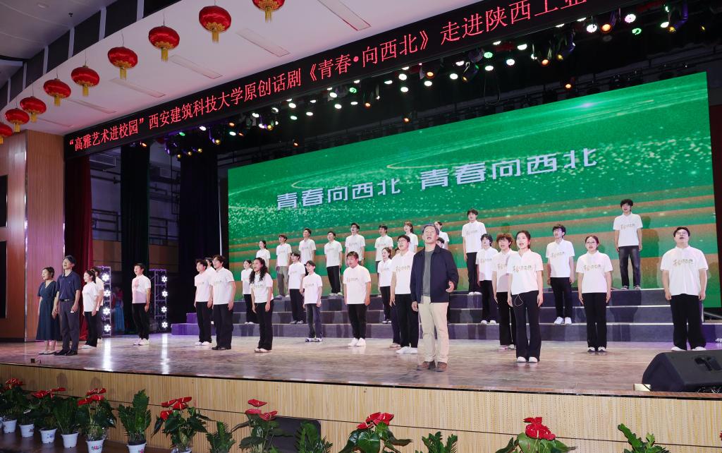5月28日晚,由陕西省委教育工委、陕西省教育厅指导,西安建筑科技大学倾力打造的话剧《青春·向西北》在我校渭城校区明德大礼堂演出。党委书记惠朝阳、党委副书记贺天柱,陕西人艺一级演员董少敏、陕西话剧院二级导演高波、西安建筑科技大学文化艺术教育中心主任许志敏等业界专家与我校千余名师生共同观看了演出。