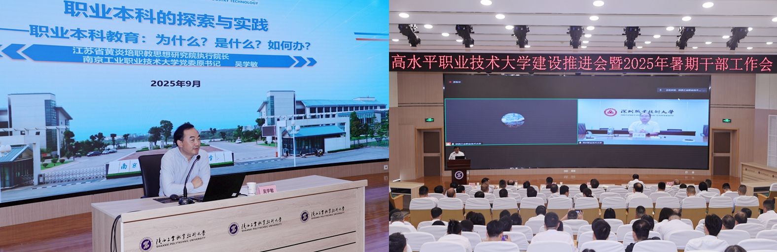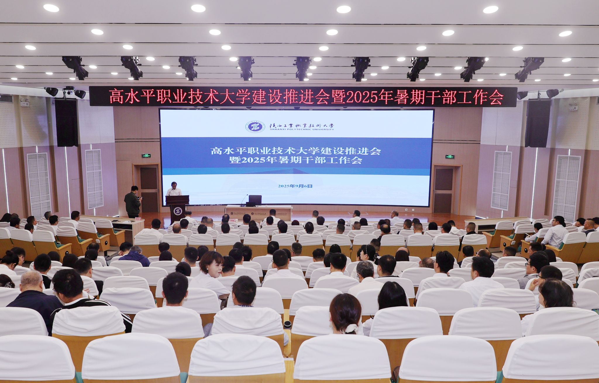 9月6日-7日,我校高水平职业技术大学建设推进会暨2025年暑期干部工作会在渭城校区学术会堂召开。会议锚定建设国内一流、世界知名的高水平职业技术大学目标任务,围绕职业本科人才培养和内部治理,通过专家专题辅导、工作部署、分组研讨、调研汇报,统一思想、凝聚力量,赋能开启陕西工业职业技术大学职教本科建设新篇章。