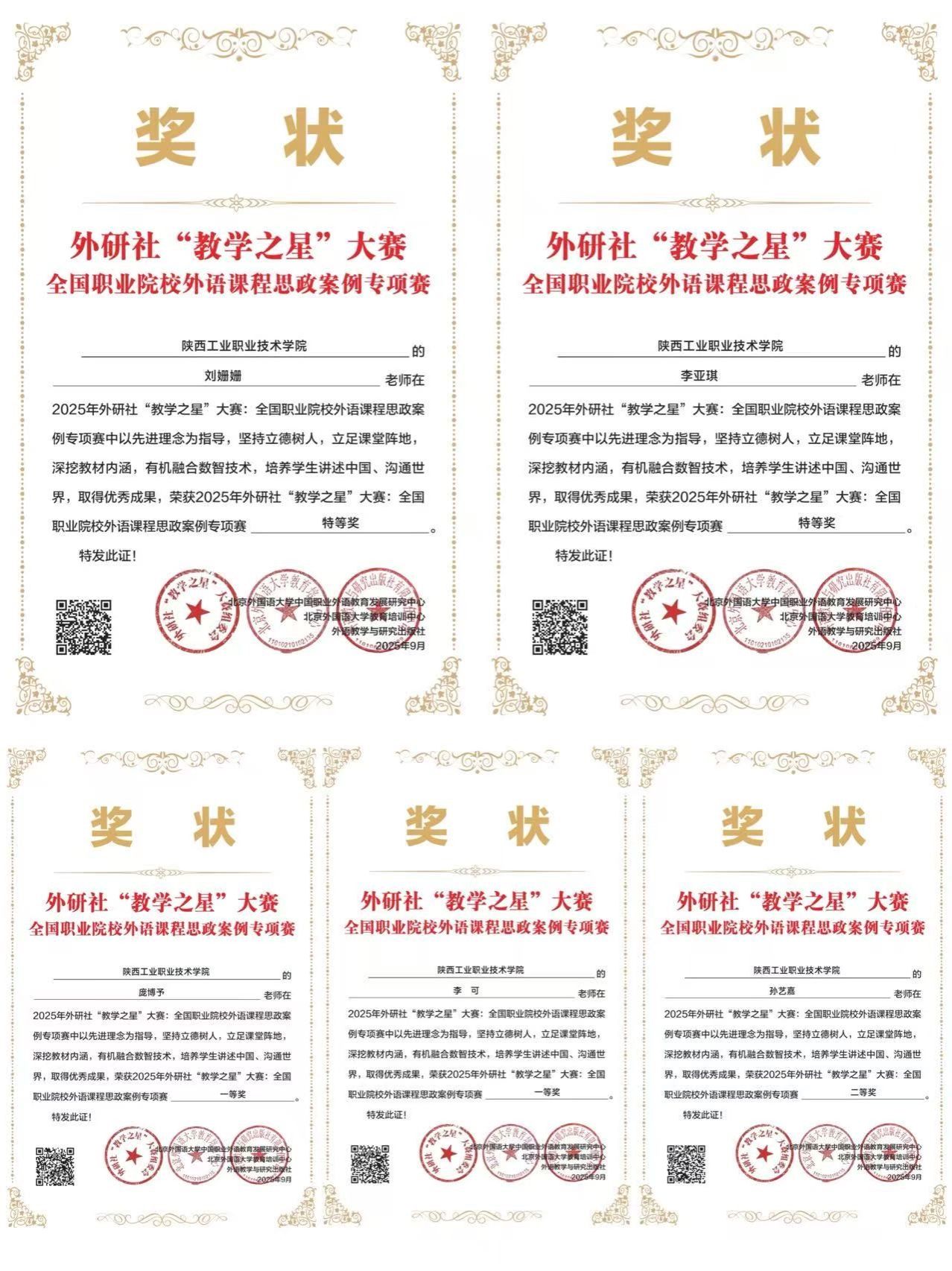 近日,2025年外研社“教学之星”大赛全国课程思政案例专项赛成绩揭晓,我校公共课教学部英语教研室多位教师凭借扎实的专业素养、创新的教学理念和出色的教学展示,在大赛中脱颖而出,斩获特等奖两项,一等奖两项,充分展示了我校外语课程思政建设与教学改革的显著成效。