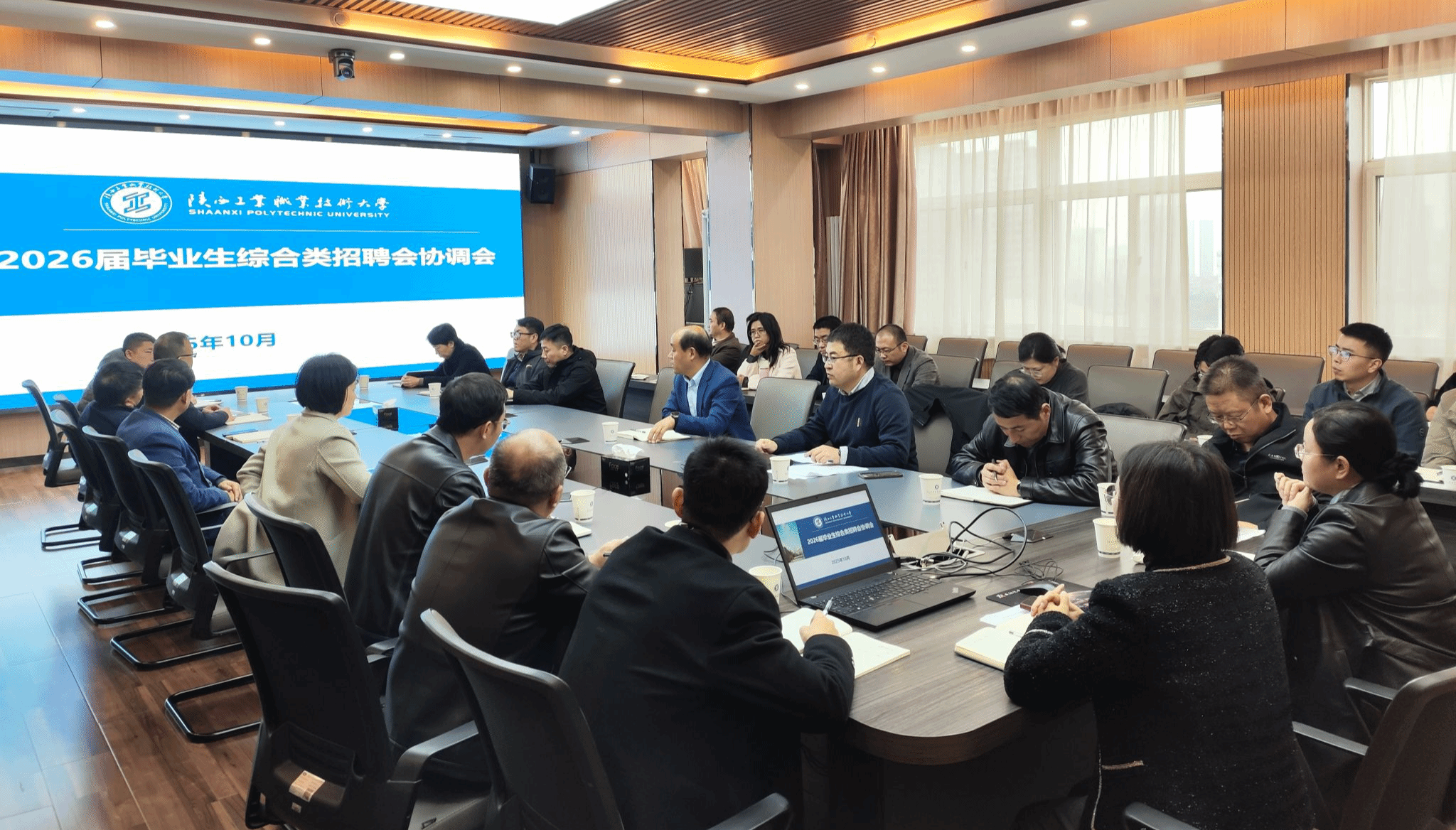 10月21日下午,2026届毕业生综合类招聘会协调会在渭城校区崇文楼第一会议室召开。副校长梅创社,党政办、宣传部、学生处、团委、后勤处、保卫处、体育部、科研处等相关职能部门负责人,以及各二级学院党总支书记、院长、学工办主任、就业指导处全体工作人员参会。