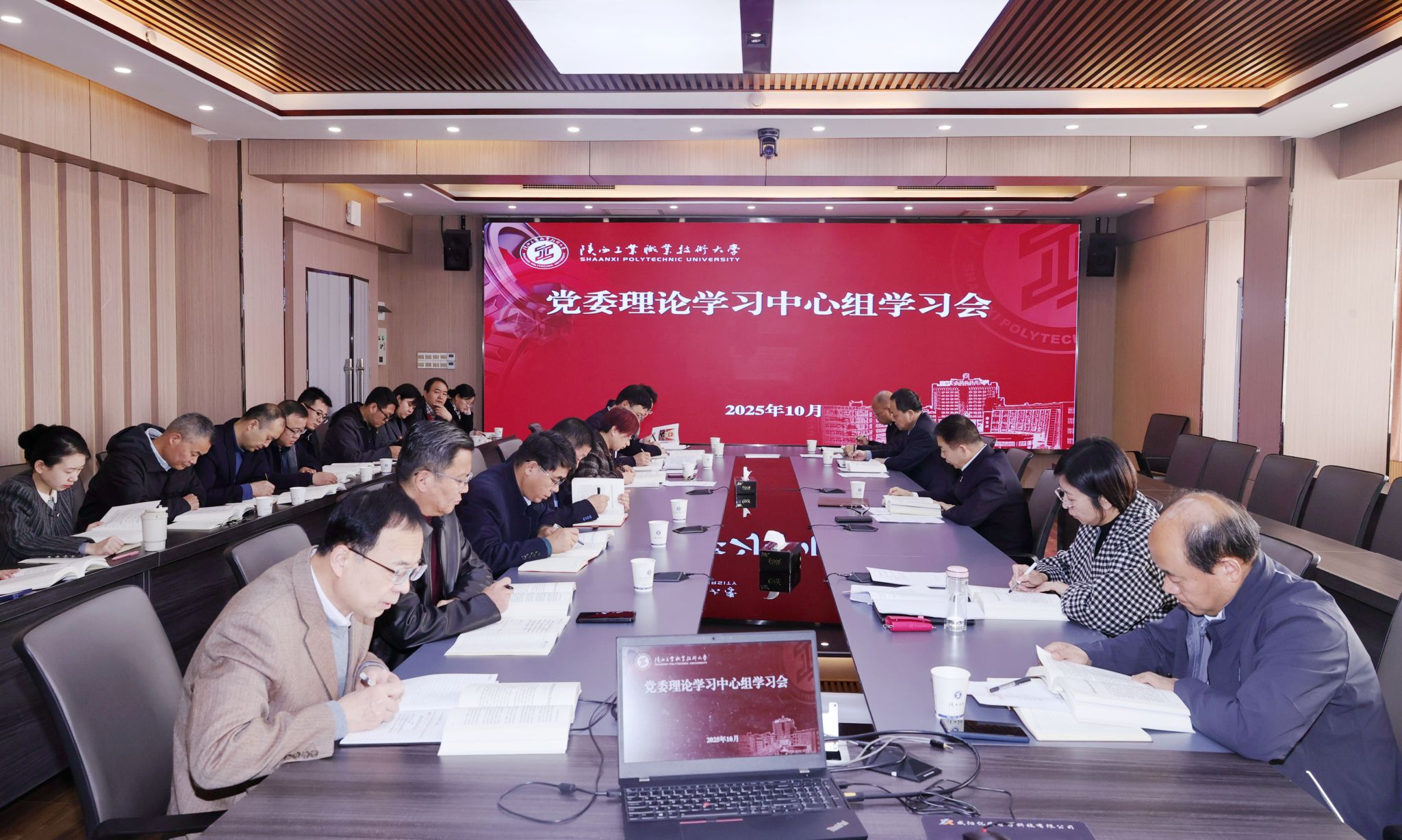 10月27日,我校党委理论学习中心组召开集体学习会,专题学习党的二十届四中全会精神,学习研讨《习近平谈治国理政》第五卷部分篇目,集体学习《中国共产党思想政治工作条例》,传达学习深入贯彻中央八项规定精神学习教育总结会议精神。党委书记惠朝阳主持会议并讲话,学校党委理论学习中心组成员参加会议,各党总支书记列席。