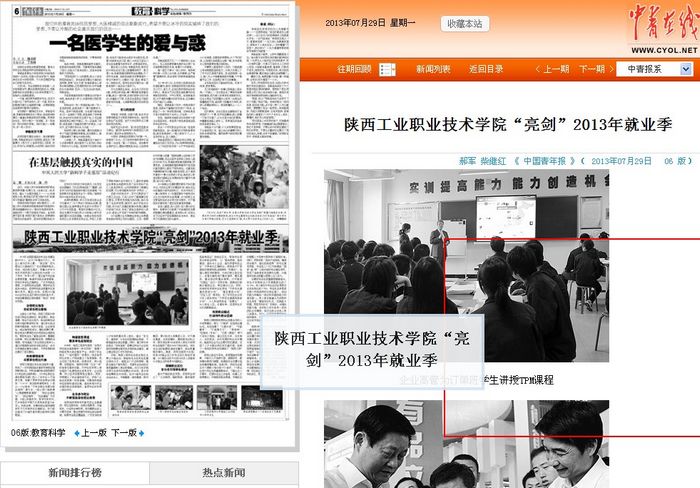 7月29日,《中国青年报》第六版“教育科学”刊发了题为《开云手机官方版在线入口“亮剑”2013年就业季》的文章,该文从“ 全程就业指导,夯实学生就业基础”、“创新课程体系,丰富学生就业内涵”、“ 畅通信息渠道,服务学生高效就业”、“全员参与就业,不断提高学生就业质量”、“ 准确就业定位,多元化引导学生就业”、“创新就业模式,打造特色就业品牌”六个方面,图文并茂地报道了我院多措并举成功应对“史上最难就业季”,圆满完成2013年毕业生就业工作,引起媒体和社会的广泛关注。