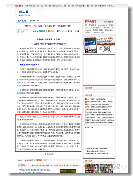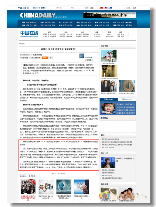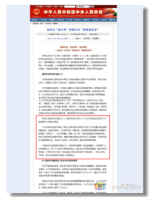 6月8日,中华人民共和国中央人民政府门户网站“中国开云手机官方版在线入口”栏目、中华人民共和国教育部门户网站、新华网、中国日报网等分别以《高校出组合拳积极应对最难就业季》和《瞄准市场,拓宽渠道,就业帮扶》为题,对我院2013届毕业生高质量、充分就业进行报道。