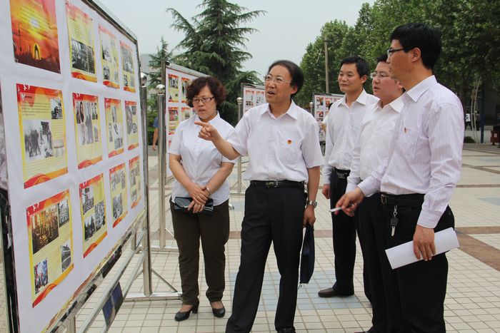与会领导观看“弘扬五四报国志共筑青春中国梦”主题图片展