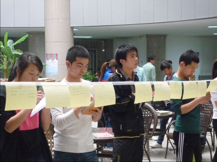 活动结束后,大家意犹未尽,一些学生合影留念,庆祝拿到了一等奖奖品;一些学生问老师要了标准答案,自己登记到小本子上;还有一些同学主动帮助老师收拾条幅、清理现场。