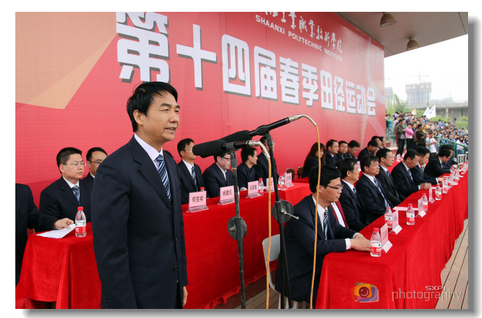 在热烈的掌声和欢呼声中,院长崔岩宣布:陕西工院第十四届春季田径运动会闭幕!