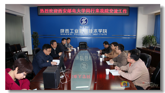 3月25日下午,西安邮电大学党委组织部一行四人来我院考察交流。党委书记邓志辉在崇文南楼第四会议室与客人进行座谈,党委组织部部长张永庚,学工部副部长、团委书记闫军,学生处副处长张科海等参加了座谈。