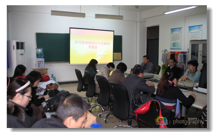 11月21日下午,服装工程学院党总支再次召开学习贯彻党的十八大精神专题会,组织全体教职工认真学习贯彻党的十八大精神。学习会上,总支书记乌军锋组织大家集体学习了学院党委下发的《关于认真学习宣传贯彻十八大精神的通知》、省委教育工委下发的《党的十八大精神传达提纲》、教工委书记杨希文在全省教育系统学习宣传贯彻十八大精神工作部署会议上的讲话精神和《中国共产党章程》修改的相关内容。