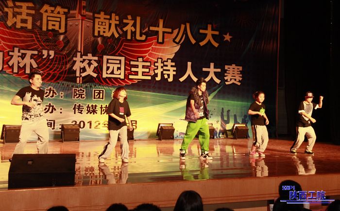 挑战无处不在,秀出我的风采。 11月15日,由我院团委主办、学生传媒协会承办的第十届文化艺术节“挑战金话筒 献礼十八大”----“咸阳移动杯”校园主持人大赛决赛在明德大礼堂举行。我院宣教部副部长张彬、学工部副部长、团委书记闫军、学生处副处长张科海、学生教育管理科科长王康虎及各二级学院团总支书记、学工办老师出席大赛,党焱、焦蕾、成冬梅、钟晓书以及蒋鹏老师担任此次比赛的评委。明德堂内座无虚席,来自陕西中医学院、陕西国际商贸学院、西藏民族学院等五个兄弟院校的同学代表及我院各个学院的1200余名师生观看了此次决赛。