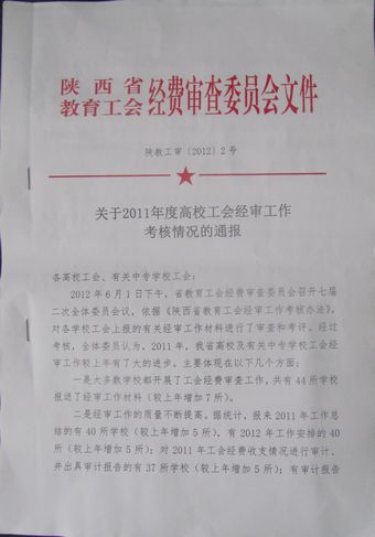 据悉,本次高校工会财务工作会议共评出2011年度陕西省“高校工会经审工作”一等奖9个,二等奖12个,鼓励奖15个。