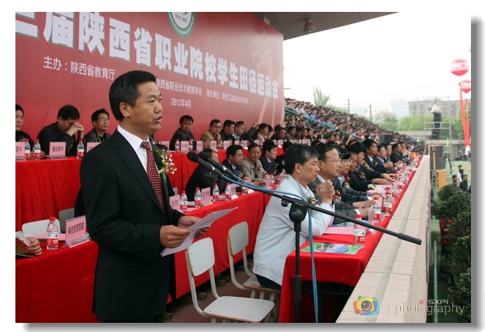 上午十点,省教育厅副厅长郭立宏宣布第23届陕西省职业院校学生田径运动会开幕。