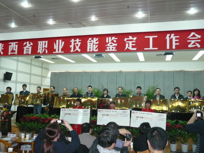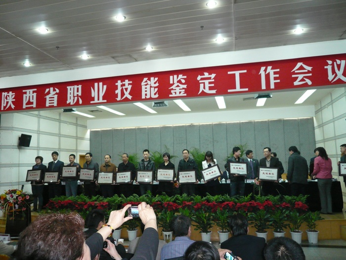 据悉,2012年度全省职业技能鉴定工作会在西安召开,来自全省各地市职业技能鉴定指导中心、职业技能鉴定所(站)、全国(省)统一鉴定考试报名培训点的400多人参加了会议。会议总结了2011年全省职业技能鉴定工作,部署了2012年职业技能鉴定工作的主要任务,表彰了2011年度全省职业技能鉴定先进单位和先进个人。我院职业技能鉴定站因管理规范,服务标准,鉴定数量和质量稳中有升,圆满完成了全年目标责任而被评为2011年度全省鉴定工作先进单位,受到大会的表彰,并颁发了奖牌。同时,在2011年5月至8月的全省职业技能鉴定站(所)质量管理示范评估中,我院职业技能鉴定站各项指标均符合省级示范站评估指标,获得“陕西省示范职业技能鉴定站”的称号及大会颁发的牌匾。