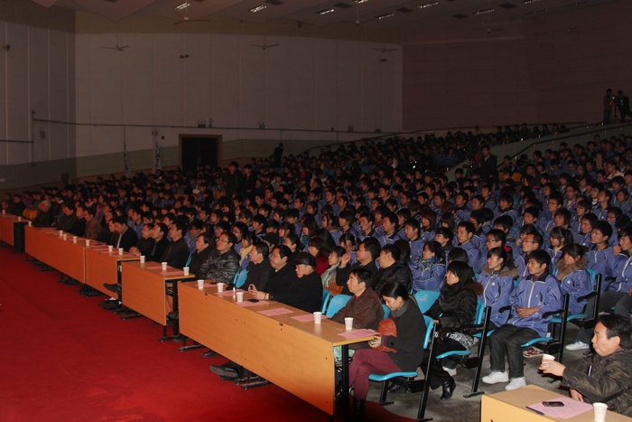 12月6日下午,学工部主办,材料工程学院党总支承办的“大学生思想政治工作系列活动之五 ——《感恩·成才》优秀主题班会汇报会”在明德大礼堂隆重举行。党委副书记王天哲和学工部、宣传部、思政部负责人,各二级学院党总支书记、学工办主任、辅导员、班主任及1000余名学生代表参加了汇报会。