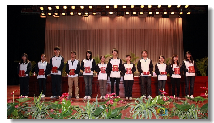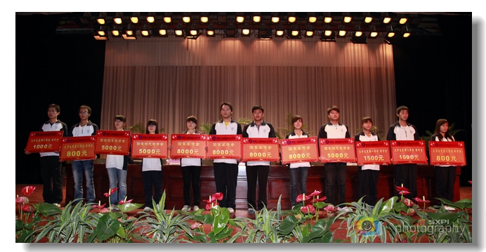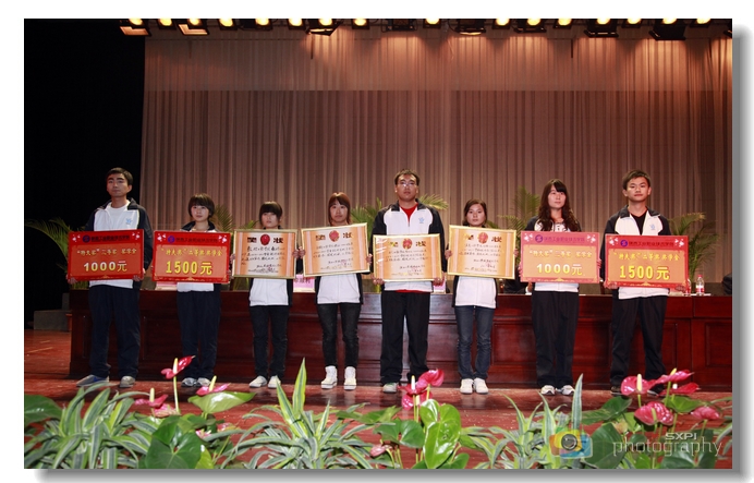 伴随着激扬的鼓乐声,学院领导为受表彰的先进集体、三好学生、三好学生标兵、国家奖学金获得者、国家励志奖学金获得者、特夫奖获得者、大学生技能竞赛获奖者、优秀学生干部和第九届文化艺术节获奖代表、2011级优秀新生代表颁奖。