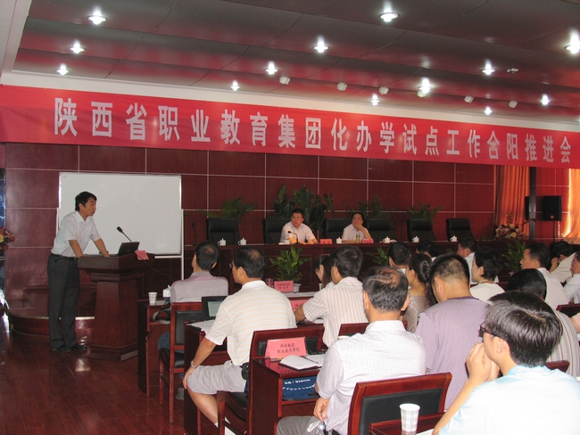8月9日至10日,陕西省承担的国家职业教育集团化办学试点项目工作推进会在渭南召开,教育部职成司综合处处长刘培俊出席会议并就职业教育集团办学情况作了专题报告,省教育厅副巡视员马三焕对我省职业教育集团化办学试点工作作了阶段总结讲话,教育厅职成处处长李明富传达了全国职业教育改革创新国家试点推进会精神,来自全省各地市教育局和30余所职业院校的60余名代表参加会议,来自全省的11所职业院校代表作了交流发言,崔岩院长代表我院作“服务西部经济转型升级,推动职业教育与产业对话协作机制建设”的主题发言。