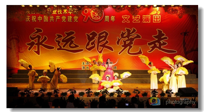 为热烈庆祝中国共产党建党九十周年,6月28日下午,由学生工作部主办的“永远跟你走”——庆祝中国共产党建党90周年文艺演出在我院明德堂隆重举行。党委书记邓志辉,院长崔岩、全体党员干部及千余名学生观看了演出。