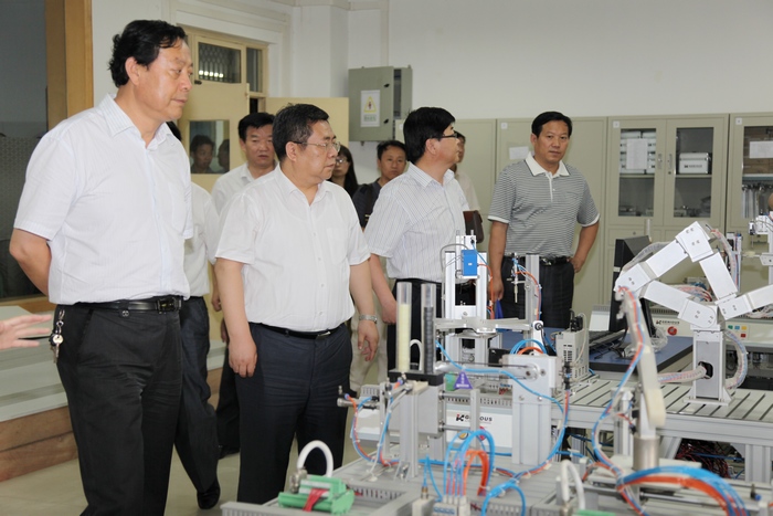 随后,在邓志辉书记及有关领导陪同下,刘文理书记、刘聪博院长一行参观了我院示范建设资料室、物流管理学院、数控工程学院、电气工程学院、信息工程学院实训实验室。