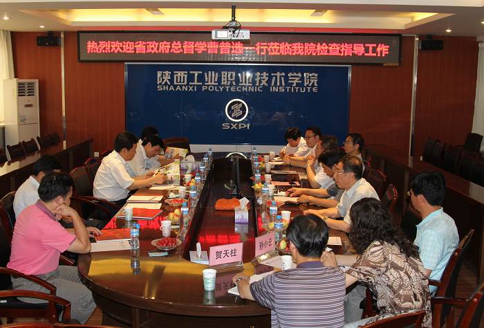 在听取汇报后,曹普选总督学对我院在人才培养、教育改革、服务经济社会发展等方面所取得的成就予以充分肯定。他说,我院是一所在陕西省及全国都具有较高影响力的高职院校,是陕西高职教育的“领头羊”,学院办学理念先进,教育教学效果好,学生就业质量高,得到了企业、社会的充分认可;依托装备制造业,特色明显;设立校友会,优秀校友反哺母校,设立奖学金、奖教金,经验值得借鉴;学院抓改革,非常到位,成效显著,充分体现了学院具有较强的领导力。最后,曹普选总督学对我院提出几点要求:一是学院要将好的经验凝练,创新模式,积极推动陕西高职教育发展;二是希望学院在更大范围内发挥示范引领作用。