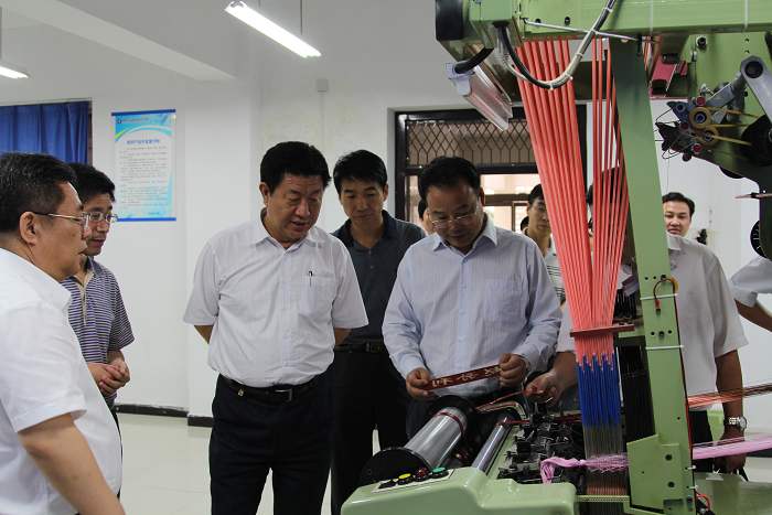 在邓志辉书记和崔岩院长的陪同下,曹普选一行考察了我院纺织染化学院、服装学院、数控工程学院的实训基地和新落成的体育场,并对我院今后建设和发展提出了宝贵建议。
