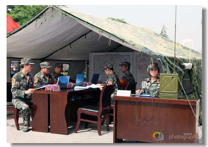 这次演练分为防灾、防空袭疏散演练和全市防空警报鸣放三个环节。9时45分,伴随着响彻校园的警报声,防震疏散演练正式开始。正在上课的师生们则按照预定路线迅速有序地撤出教学楼,往疏散目的地集中。三分钟后,所有人员在指定地点整队集合清点人数,静待警报解除。与此同时,医疗救护小组迅速行动,现场救治伤员。10时10分,空袭警报响起,400名学生在疏散引导员的引导下,有序地进入到教学楼下的人防工事进行隐蔽。各部门人员和师生们沉着应战,顺利而出色地完成了组织指挥、紧急疏散、医疗救护等各项演练内容。全体参演人员动作规范,符合要求,受到了现场领导高度赞扬。