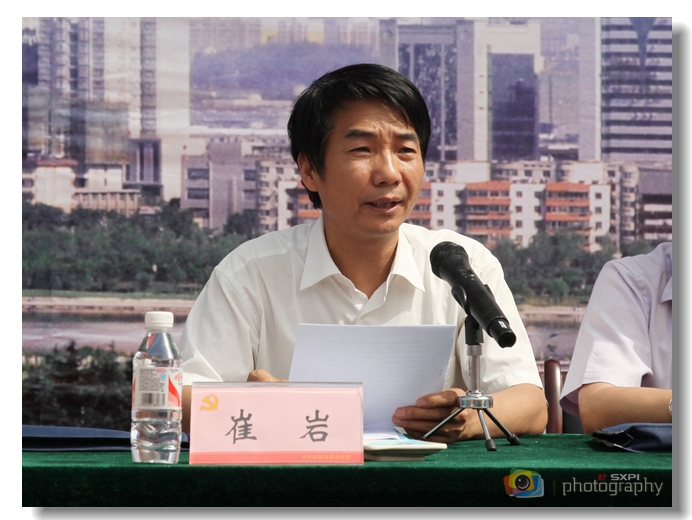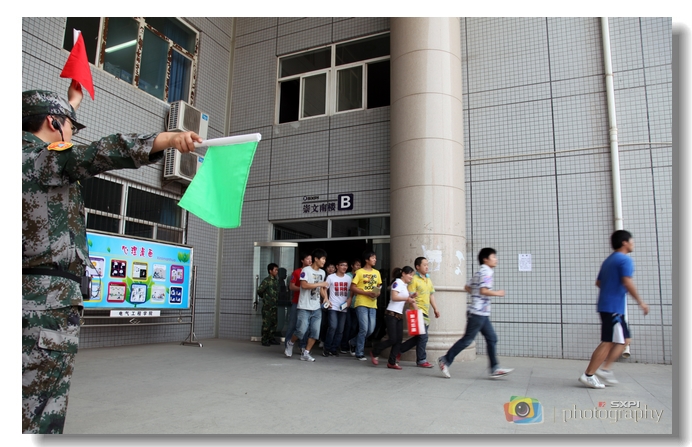 院长崔岩在讲话中说,今天是咸阳市解放62周年纪念日,市人防办在我院举行防空警报试鸣暨学生疏散演练活动,以此警醒我们:铭记历史,居安思危,增强大家的国防观念和忧患意识。他代表全院18000余名师生,对前来我院参加本次活动的各位领导表示热烈的欢迎,对各级领导的信任和大力支持表示衷心的感谢。他指出,通过本次疏散演练,使学生熟悉了警报信号的规定和疏散隐蔽路线、地点,提高了自我保护意识及应对突发事件的能力,增强了自救、自护及心理承受能力。整个活动,体现了当代大学生的良好素质。