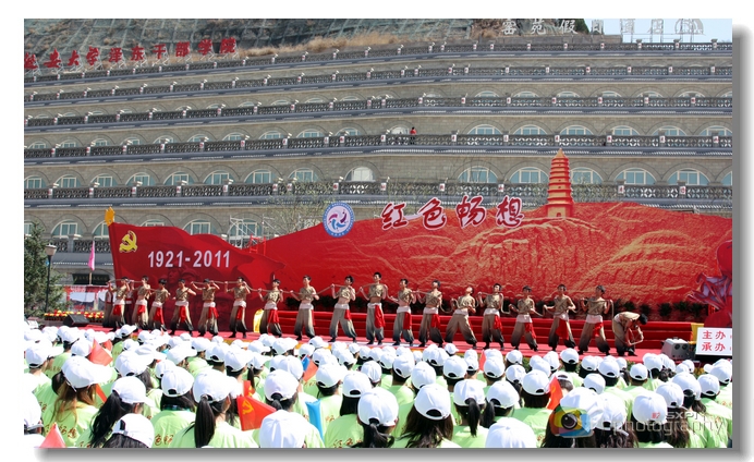 4月24日下午,延安大学窑洞广场歌声如潮,由陕西省教育厅主办的2011年“五月的鲜花”——红色畅想”大型校园文艺演出在这里举行隆重开演。来自陕西工院、西北大学、西安音乐学院等16所高校的共300余名学生与延安大学的万余名学生相聚革命圣地,共同唱响时代主旋律,讴歌中国共产党在各个历史时期领导全国人民取得的伟大成就。