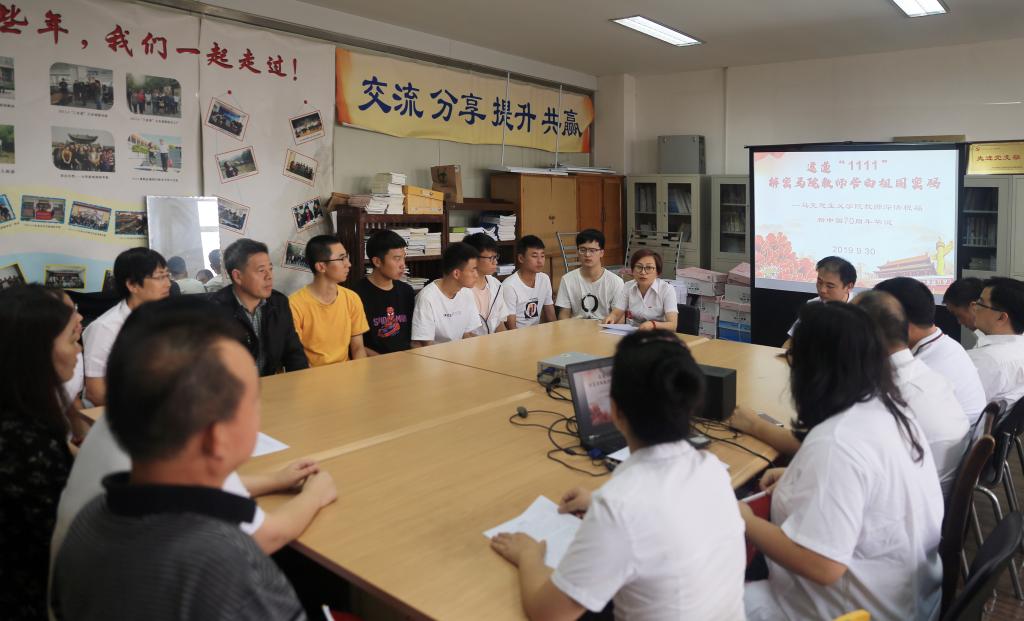 9月30日下午,在新中国即将迎来70华诞之际,马克思主义学院紧密结合学院党委正在开展的“不忘初心、牢记使命”专题教育,以“四个一”为主线,组织全体教师和部分学生代表合唱一首国歌、宣讲一节思政微课、观看一部献礼巨片、推送一句承诺祝福,以一场别开生面的纪念活动为伟大祖国送上了一份特殊的生日祝福。活动由马克思主义学院院长王金辉主持。