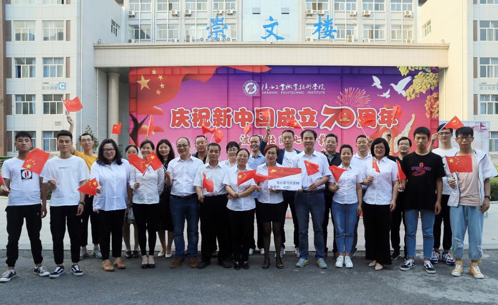 推送一句承诺祝福:活动最后,马院全体教师和学生代表手执小国旗进行了合影留念,并做出郑重承诺并表达了对祖国的深情祝福:作为思政课教师,我们庄严承诺,不忘教育报国初心,牢记立德树人使命,为培养德智体美劳全面发展的社会主义建设者和接班人而不懈奋斗!值此新中国成立70周年之际,我们马院全体教师衷心祝愿伟大祖国生日快乐、永远繁荣昌盛!