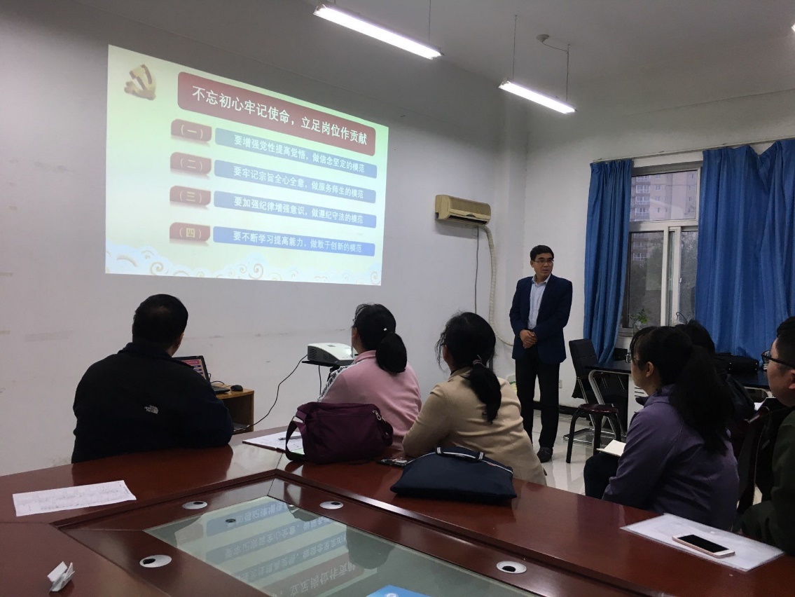 10月15日下午,航空学院党总支书记刘军旭以“不忘初心共筑梦,牢记使命勇向前”为题为教师党员讲专题党课,党课在行知楼E413进行。