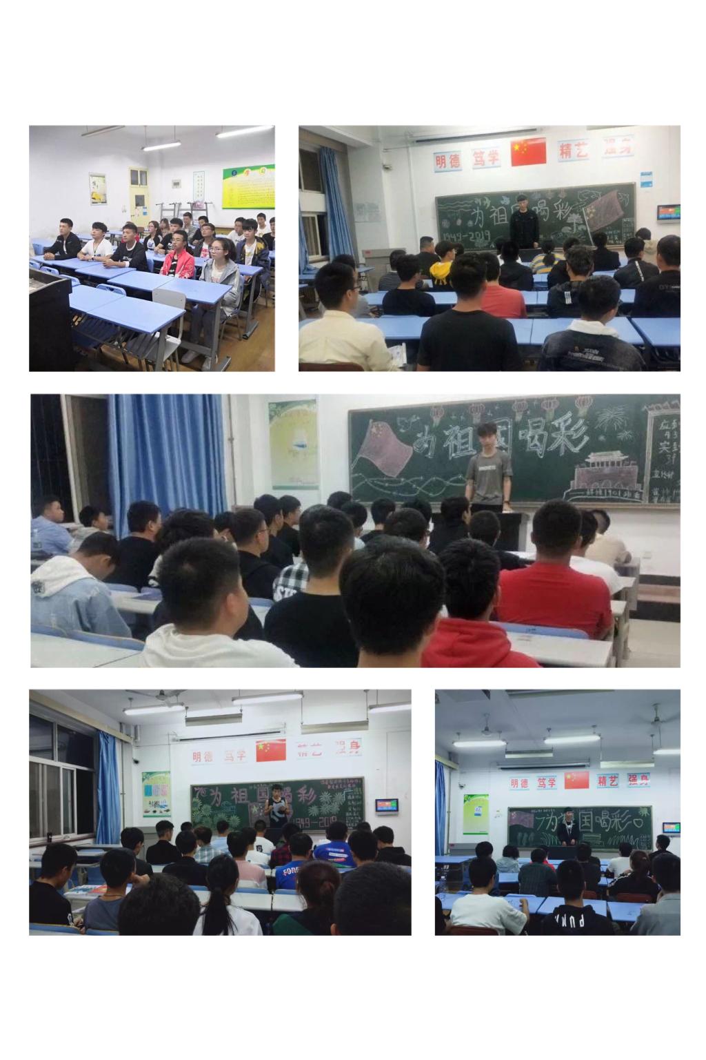 为落实学院关于《庆祝中华人民共和国成立70周年“波澜壮阔七十载•强国一代有我在”主题宣传教育活动实施方案》的工作安排,10月15日晚,材料工程学院组织各班利用晚自习召开了以“为祖国喝彩”为题的主题班会。