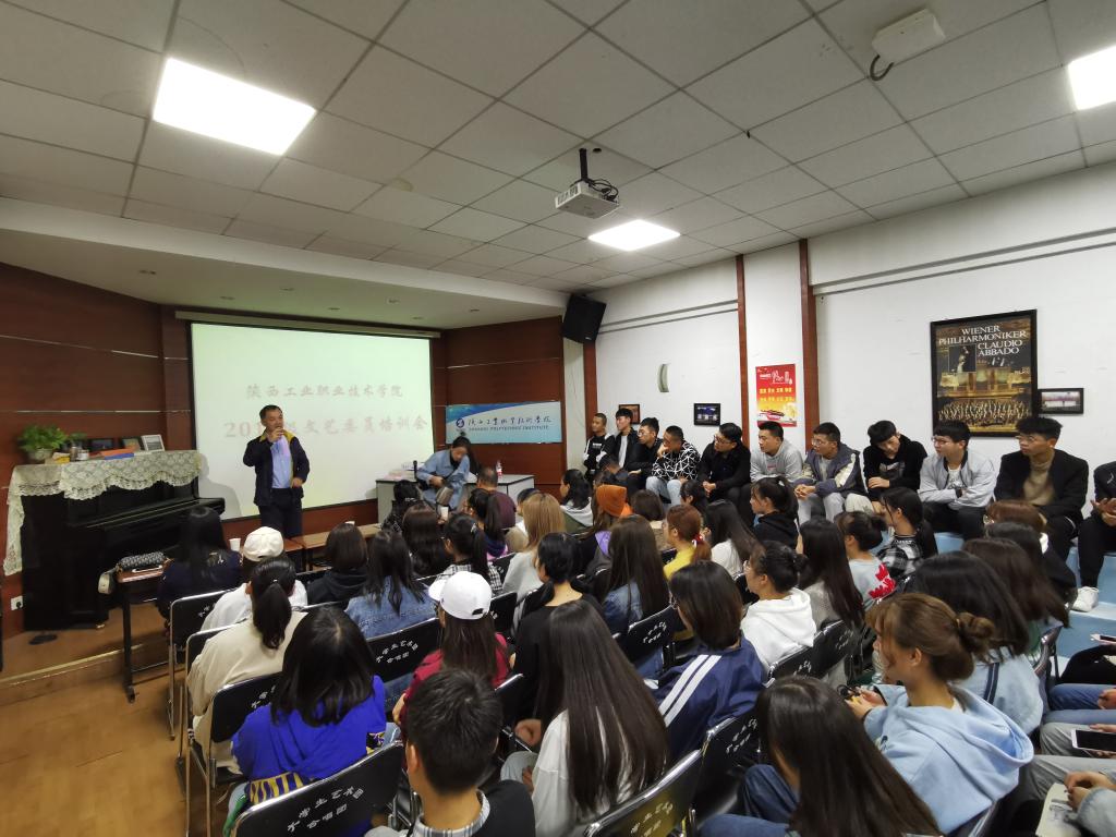 为了充分发挥我院学生文艺委员的文化艺术引领作用,美育部特针对各二级学院2019级文艺委员举办了培训活动,来自各二级学院共百余名具有文艺特长及爱好的同学参加了培训,10月17日下午,文艺委员培训活动在明德堂北二楼音乐鉴赏教室举行,美育部部长付胜利及部分老师参加了培训活动。