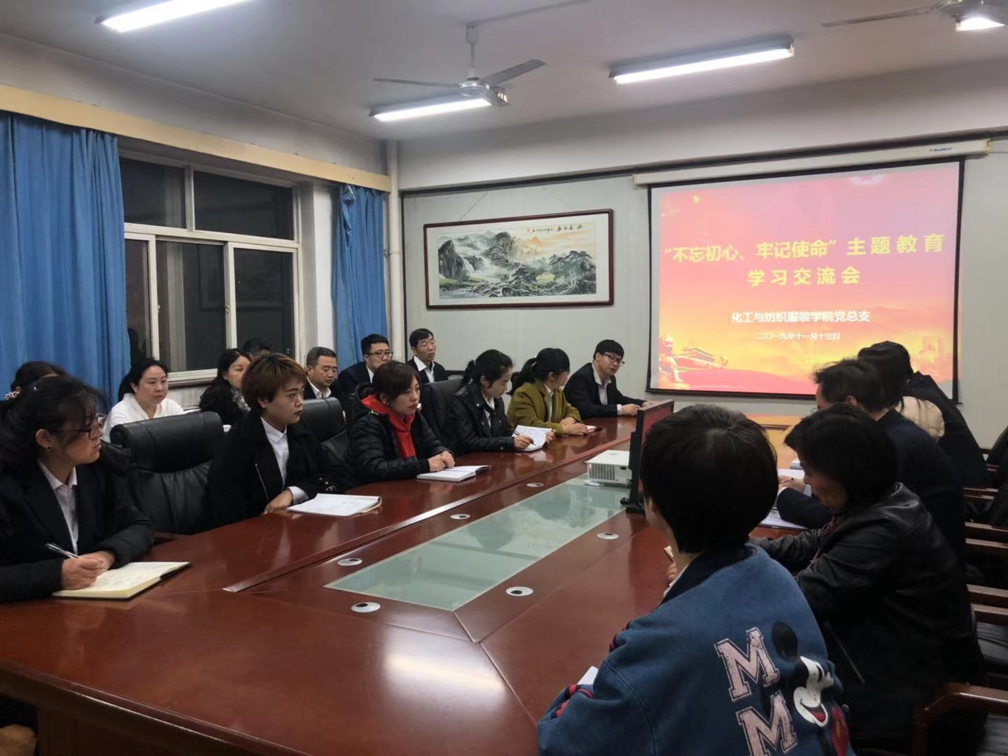 11月13日晚,化工与纺织服装学院于崇文楼811召开“不忘初心、牢记使命”主题教育学习交流会,会议由化纺服学院党总支书记王化冰主持,全体党员参会,会上大家踊跃发言,交流学习心得体会。