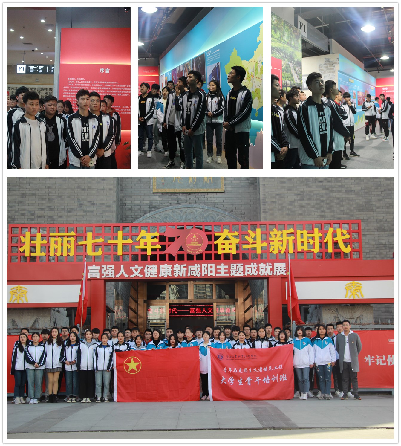为热烈庆祝中华人民共和国成立70周年,教育广大团员学生不忘初心、牢记使命,11月14日下午,院团委组织第十三期“青马工程”培训班部分学员参观了“壮丽七十年 奋斗新时代——富强人文健康新咸阳”主题成就展。