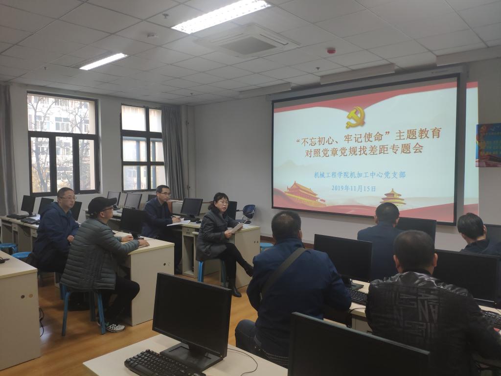 11月15日,机械学院党总支教师第一、第二支部(机加工中心支部)和学生第一、第二支部分别在精艺楼2013、2014室和行知楼E412室召开“不忘初心、牢记使命”主题教育对照党章党规找差距专题会,机械学院全体教师党员分别参加各支部会议,机械学院教师第一支部书记张文亭、第二支部书记郭新玲、学生支部书记张党清分别主持各支部会议。