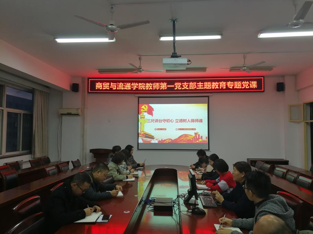 为深入推进“不忘初心、牢记使命”主题教育,11月18日下午,商贸与流通学院教师第一党支部在崇文五楼会议室开展“支部书记讲党课”活动,教师第一党支部全体党员参加了此次活动。