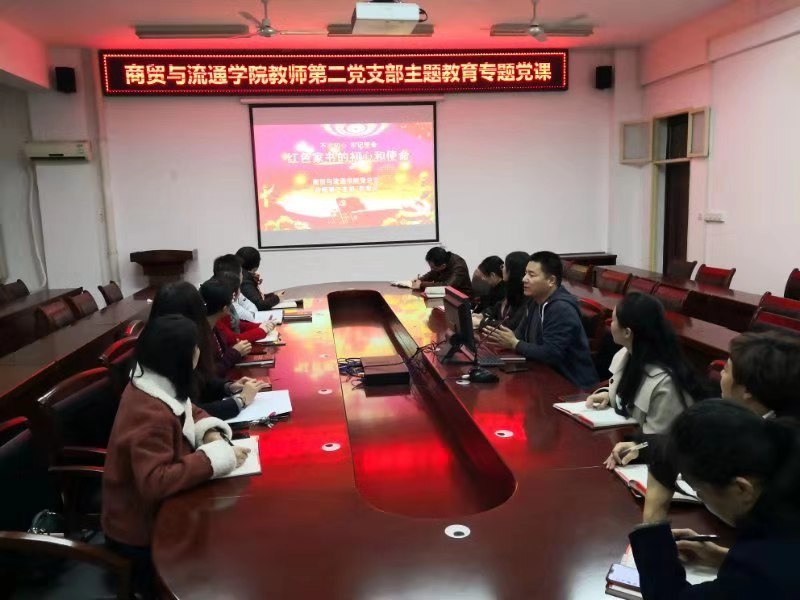 为深入推进“不忘初心、牢记使命”主题教育,1121日下午,商贸与流通学院教师第二党支部在崇文楼五楼会议室开展“支部书记讲党课”主题活动,教师第二党支部全体党员参加了此次活动。