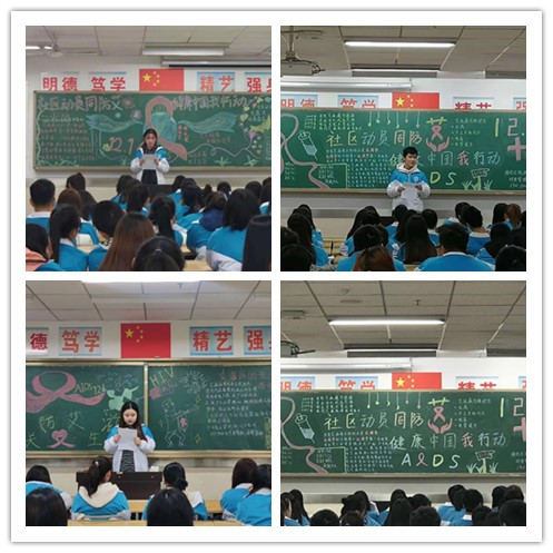为了响应第32个“世界艾滋病日”主题宣传活动,进一步提高学生对艾滋病的认识,普及艾滋病防治知识,激励学生养成健康良好的生活方式。根据后勤处拟定的“2019年艾滋病宣传月活动方案”,12月1日,财经与旅游学院组织2018级、2019级学生在晚自习教室召开了 “社区动员同防艾,健康中国我行动”的主题班会。