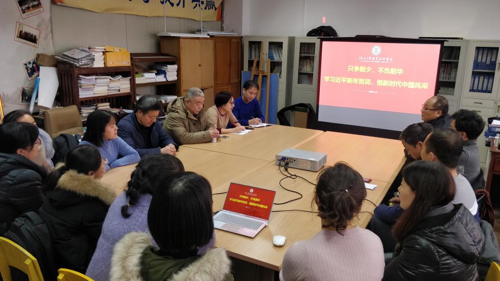 活动中,全体教师首先集体观看了习近平总书记2020新年贺词视频,同时学习了学院正在遴选的“2019年十件大事候选事件”。随后,全体教师结合习近平总书记新年贺词和学院十件大事候选事件,对2019年国家发展所取得的巨大成就进行了回顾,对2020年的高质量发展进行了展望;对学院2019年事业发展中影响巨大的系列重大事件进行了热议,对学院2020年的美好前景充满了期待。大家一致认为:聆听总书记新年贺词,深切感受到了祖国踏浪前行的奋进力量,愈加凝聚起了我们冲锋决胜的发展信心,深度激发了大家作为新时代见证者的爱国之志、报国之行。与此同时,作为全国“双高”(A档)建设单位的一员,我们心怀自豪、肩担重任,在2020年,站在学院发展的重大历史机遇上,乘着新时代东风,凝心聚力加油干,只争朝夕、不负韶华,筑好工院梦、共逐中国梦。