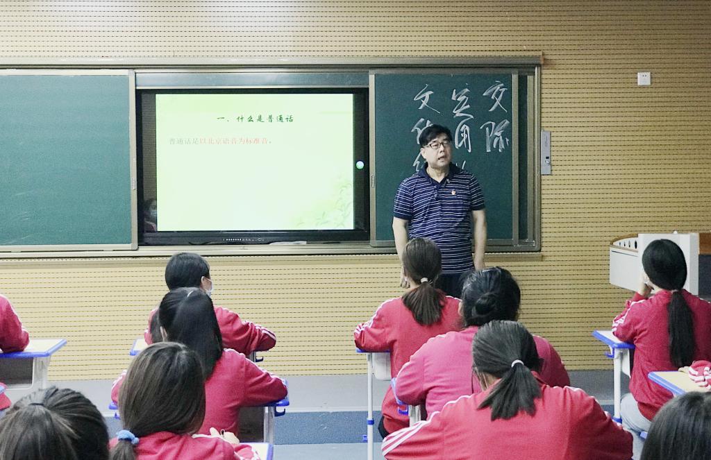 刘刚老师为职教中心的四十名幼教班学生带去了一节深入浅出、声情并茂的普通话概论课程,针对本课的教学内容和学生的具体情况,刘老师利用信息化教学设备,采用任务驱动型教学手段展开教学,以生活中由于方言而造成交流障碍的实际案例作为导入,使学生认识到讲好普通话的重要性,接着提出一个总体任务:要求学生在课程结束时用标准的普通话声情并茂地朗诵一首诗歌或一篇散文。学生在明确了学习意义和目标任务的前提下得以更加积极主动地投入到课堂学习之中。刘老师从普通话的概念、推广普通话的意义、普通话与方言的区别、学习普通话的方法四方面进行讲授,师生互动,讲练结合,学生反映良好。鉴于此次推广普通话工作效果良好,我院将继续开展第二期普通话培训工作。第二期将针对礼泉县农民展开培训,帮助农民扫除与他人交流沟通时的方言障碍。