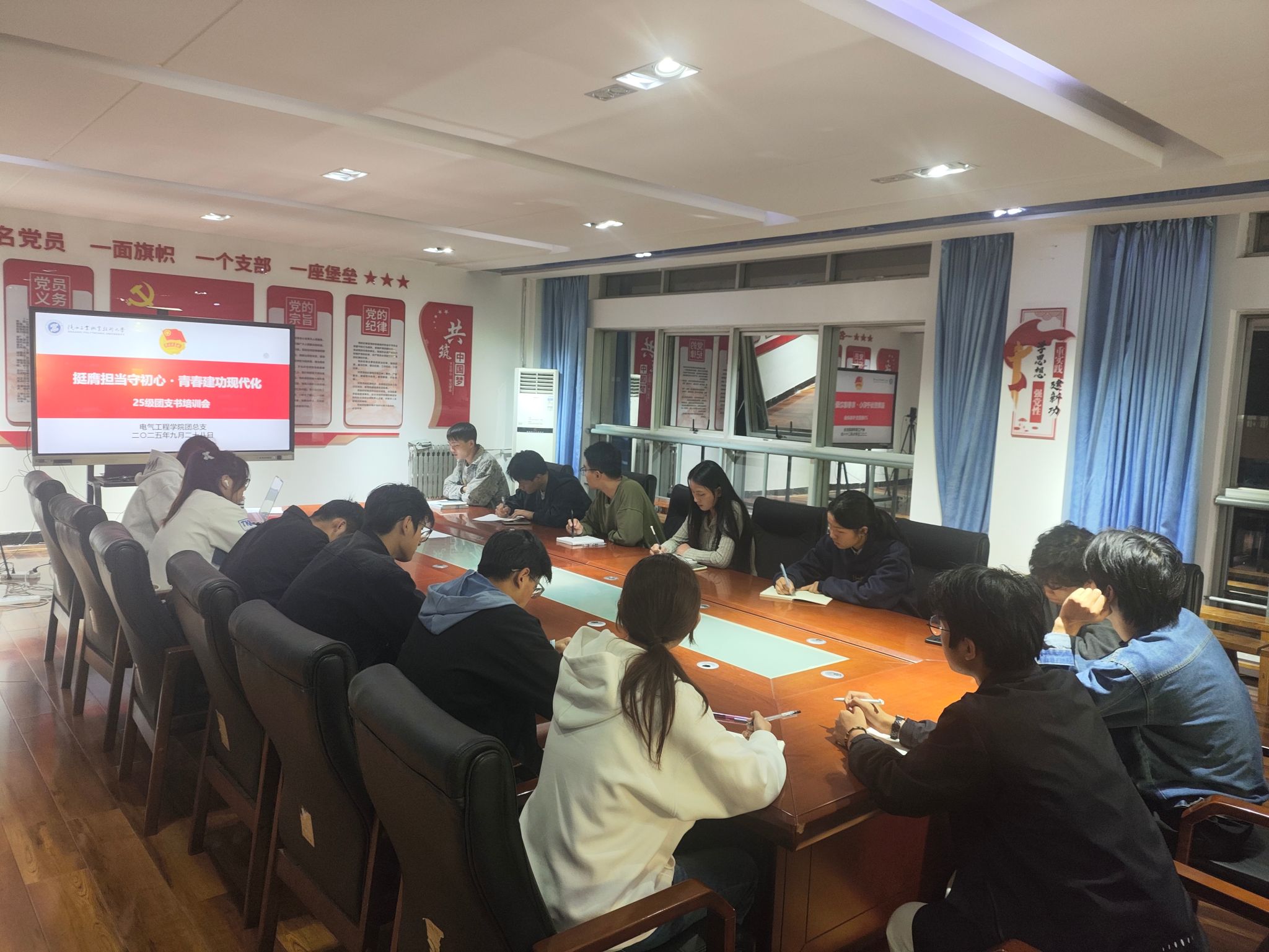 为助力学院2025级新任团支书快速掌握团务工作要点,提升基层团组织工作能力,9月28日晚,电气工程学院团总支在行知楼A506组织开展新任团支书专题培训会。会议由教师团干部庞文瑶主持,学生团干部许淑怡、张智聪、南豪分别开展业务讲解,2025级全体新任团支书参会。
