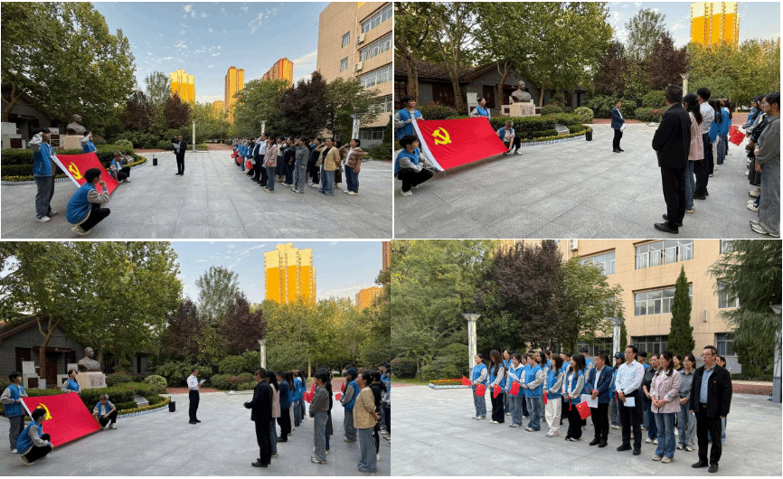 在国庆节来临之际,恰逢学校升格为职业技术大学的历史性关键节点,9月29日下午,化工与纺织服装学院教师党支部在渭城校区王达成广场隆重开展“我是党员,我用实际行动践行入党初心”主题党日活动。学院教师支部党员、学生支部党员代表齐聚一堂,在庄严氛围中重温初心使命,凝聚职教育人力量。活动由化纺服学院教师党支部副书记程序主持。