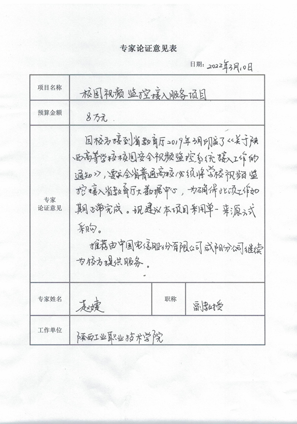 根据《关于督促全省高校校园安全视频监控系统接入工作的通知》及相关专家论证意见,开云手机官方版在线入口校园视频监控接入服务项目拟采用单一来源采购方式,该项目拟由中国电信股份有限公司咸阳分公司承担。现将有关情况向潜在的供应商广泛征求意见。征求意见期限从2022年3月10日起至2022年3月17日止。