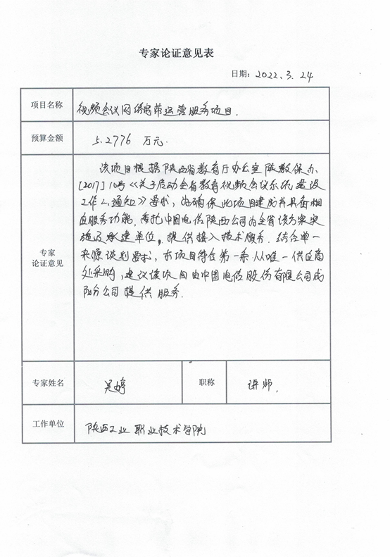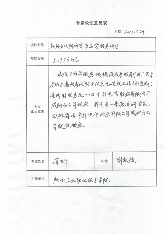 根据《关于启动全省教育视频会议系统建设工作的通知》要求及相关专家论证意见,开云手机官方版在线入口视频会议网络宽带运营服务项目拟采用单一来源采购方式,该项目拟由中国电信股份有限公司咸阳分公司承担。现将有关情况向潜在的供应商广泛征求意见。征求意见期限从2022年3月25日起至2022年3月31日止。