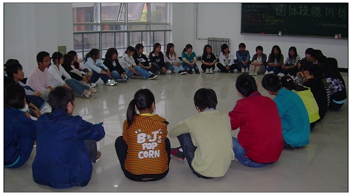 团体训练以协调人际关系、促进人际和谐、增强团体凝聚力、提升个人自信心为主要训练内容,通过“你我他”、“用手传真心”、“信任后倒”、“优点轰炸”、“心有芊芊结”等游戏方式使同学们不断探索和了解自我,认识自身潜能,增强自信心,增进彼此间的交流和沟通。(学生处 柳林供稿)