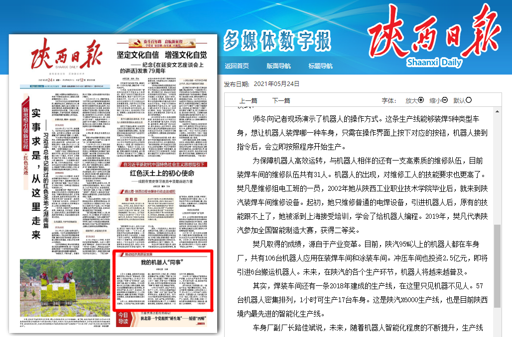 樊凡取得的成绩,源自于产业变革。目前,陕汽95%以上的机器人都在车身厂,共有106台机器人应用在装焊车间和涂装车间。冲压车间也投资2.5亿元,即将引进6台搬运机器人。未来,在陕汽的各个生产环节,机器人将越来越普及。
