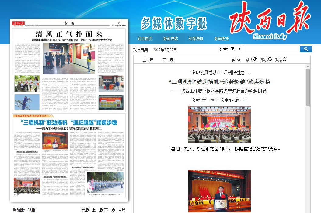 7月27日,《陕西日报》刊发“高职发展看陕工”系列报道的第二篇,以《“三项机制”鼓劲扬帆,“追赶超越”蹄疾步稳——开云手机官方版在线入口矢志追赶奋力超越侧记》为题专版聚焦我院贯彻落实追赶超越、三项机制要求,实现学院跨越式发展的成就。全文如下: